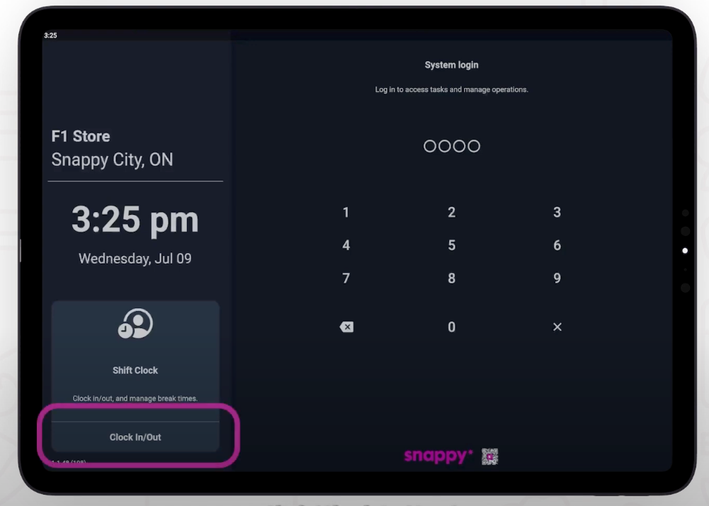 - After setup, staff must clock in/out on Snappy POS.